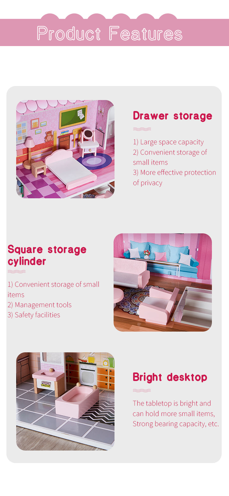 Your little one can explore, create, and imagine to their delight as they give the included miniatures furniture a place to live within this charming dollhouse. Invite friends over for a fun, imaginative playset up session or spend quality time creating scenes with mom or dad – the possibilities are endless! Whether spending quiet time alone or sharing giggles with family and friends, there’s something special about playing make believe in such a cozy home. Your daughter will be delighted when she opens this special gift from you!