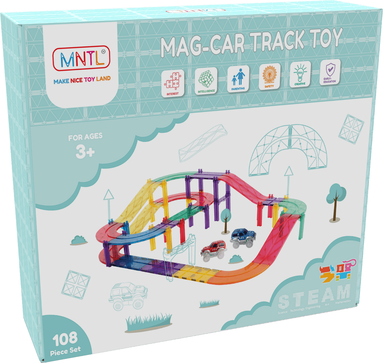 Transform playtime into an exciting STEM learning experience with the MNTL Magnetic Car Track Set 108 Pieces! This premium magnetic building toy combines the thrill of racing with educational construction play, making it perfect for young engineers and racing enthusiasts aged 3 and up.