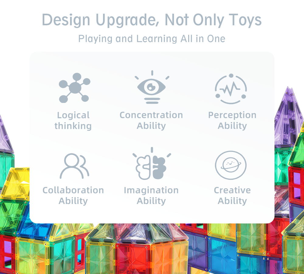 Ages 3+ only. Choking hazard — small parts. Adult supervision recommended for younger children. Clean with mild soap and water, ensure pieces are completely dry before storage. Check magnets regularly for damage.