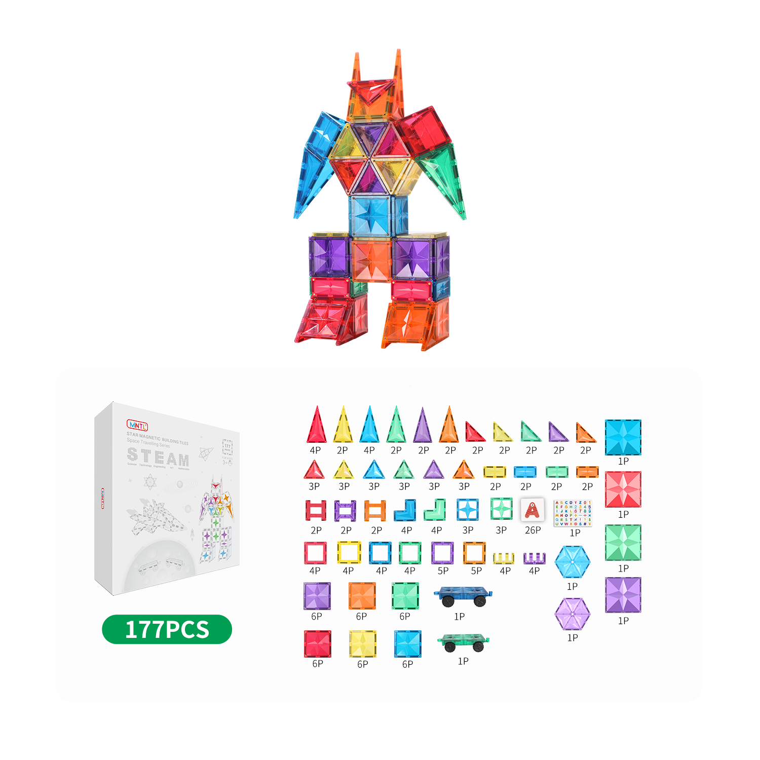 Spark imagination with the MNTL Classic Space Travelling Magnetic Tile Set featuring 177 premium pieces. This comprehensive building set combines quality construction with endless creative possibilities, perfect for young builders aged 3 and up. Each tile features strong magnets and durable ABS plastic construction, designed to inspire hours of educational play while developing spatial reasoning and problem-solving skills.