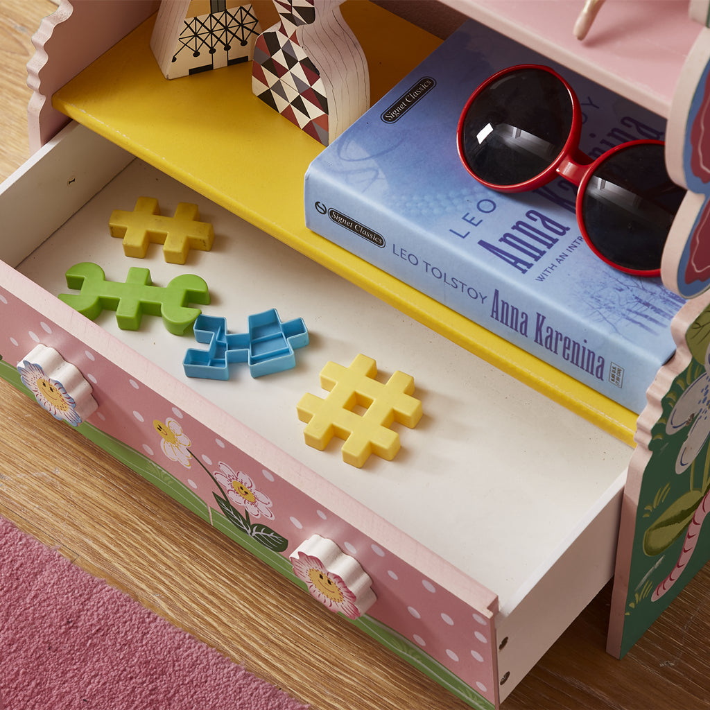 The All 4 Kids Girls Hand Painted 3-Tier Flower Bookcase with Drawers is a refined choice for a child's room, combining elegant design with practical storage solutions and safety features.