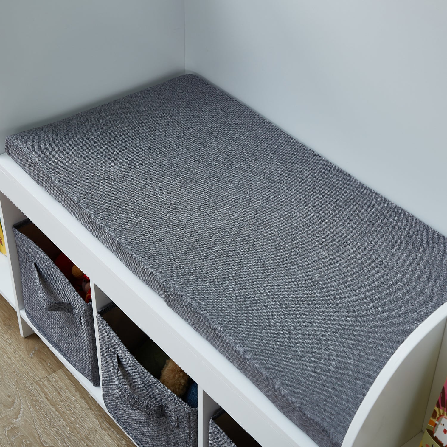 Introducing this stunning storage bookcase, a true multitasker that seamlessly fits into hallways, kitchens, family spaces and kids bedroom. Coming with the Natural Bench Cushion for a cozy family vibe, or opt for the Grey Stardust Bench Cushion for a charming addition to your children's rooms.
